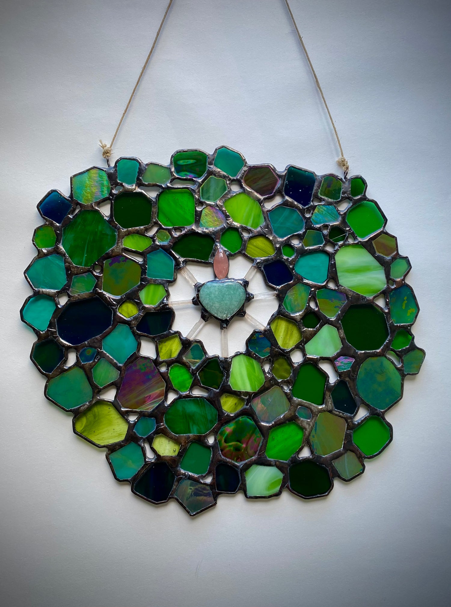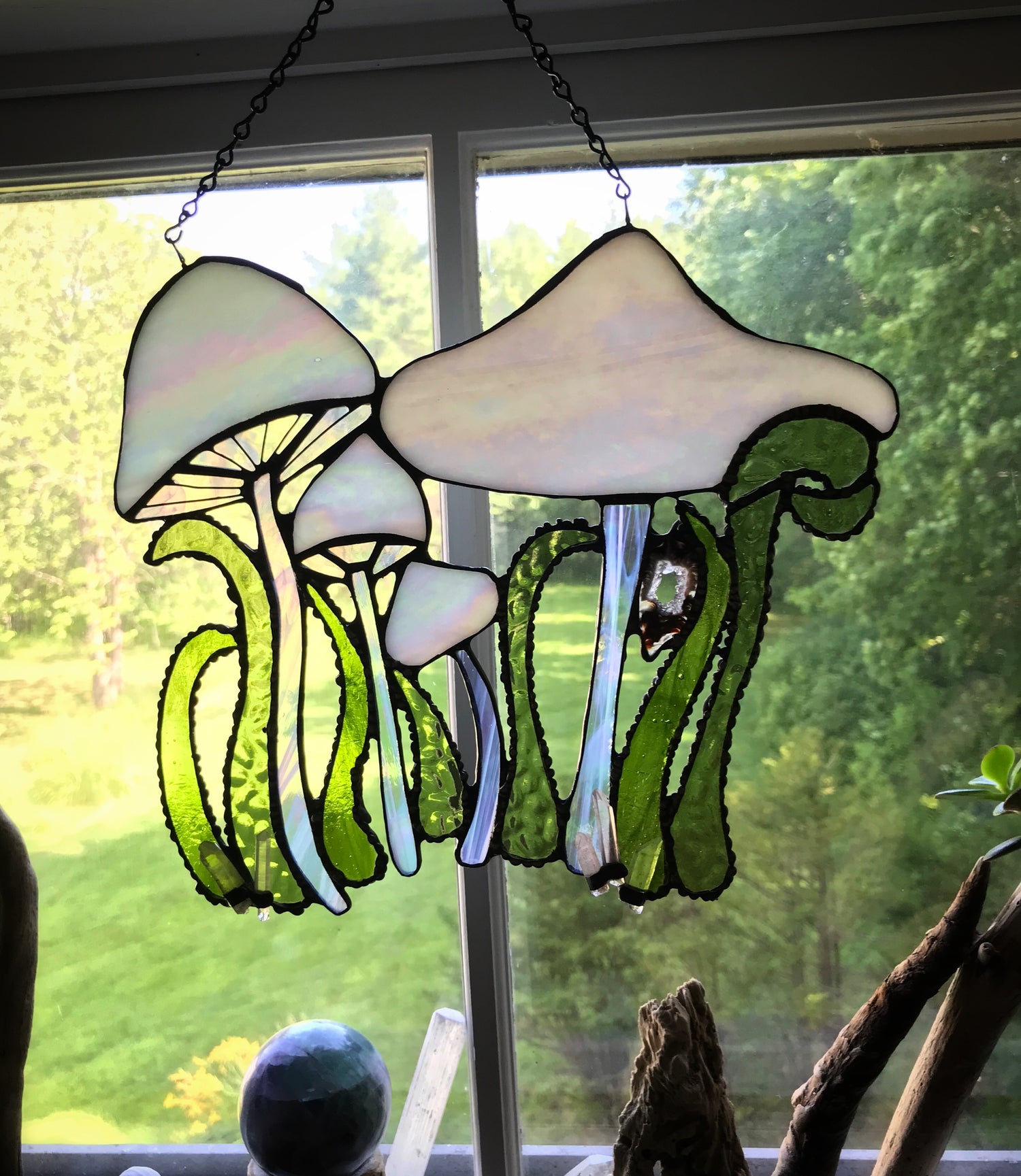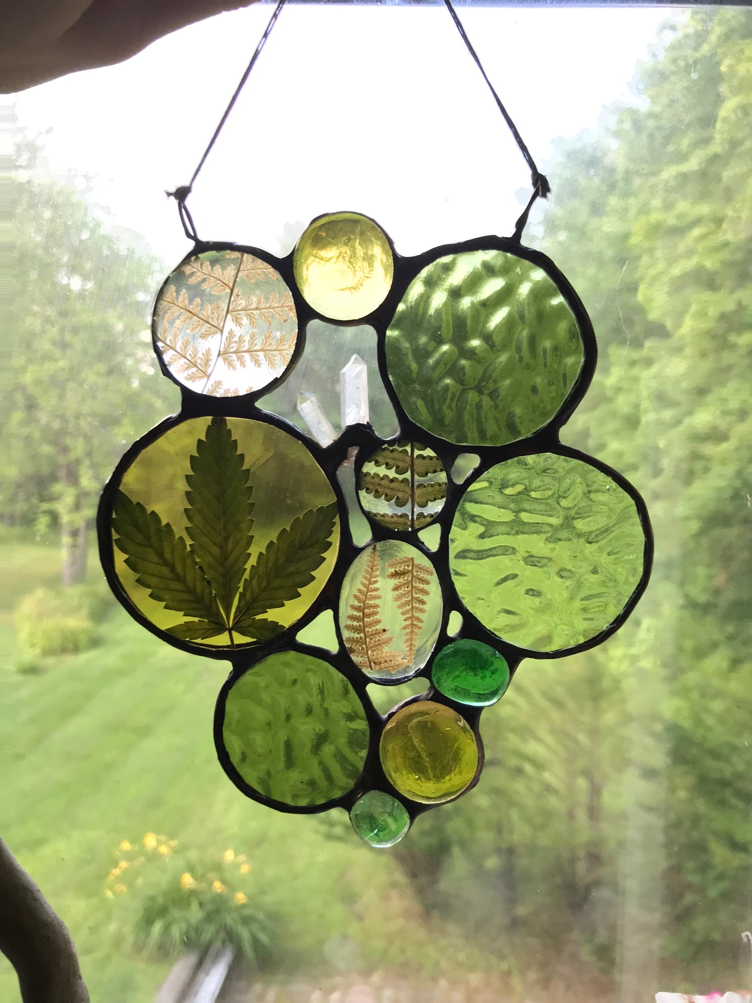 Glass, Quartz Crystals, Ferns, Cannabis Leaf
