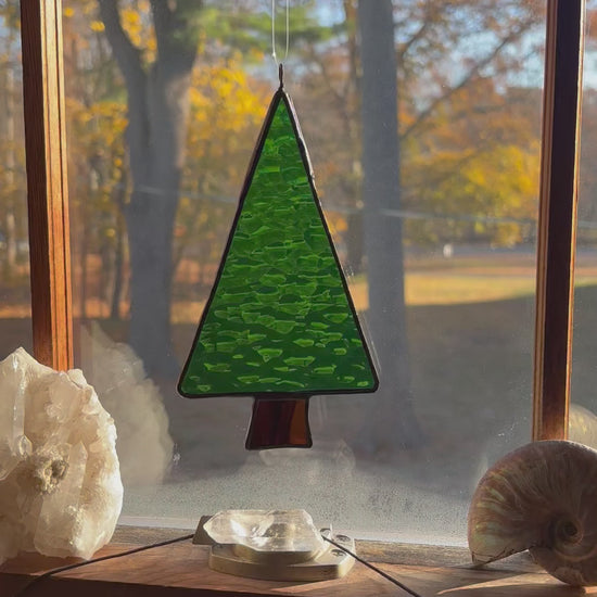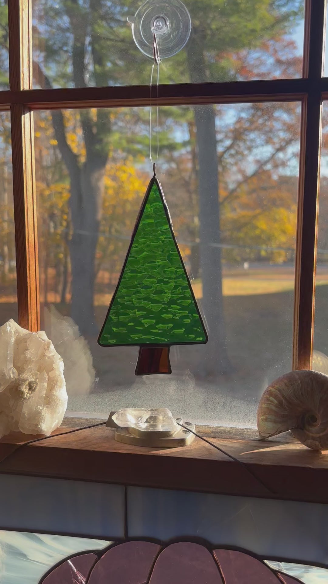 This one of a kind suncatcher was created using a beautifully textured green glass.